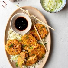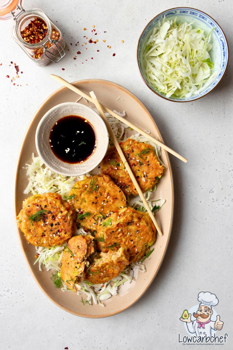 Het klinkt misschien verrassend, maar met tonijn kun je heerlijke hartige pannenkoekjes maken. Eerder maakten we al tonijnburgers, een van de populairste lunchrecepten op de site. In deze Oosterse variant mengen we tonijn met geraspte wortel, bosui en twee eieren. Dat zorgt voor een frisse, knapperige textuur en een subtiele zoetheid die perfect past bij de hartige smaak van tonijn. De sojasaus en een vleugje cayennepeper geven de pannenkoekjes hun Oosterse smaak. Je kunt eventueel wat extra peper toevoegen, maar zout is niet nodig,  de sojasaus brengt al genoeg zoutigheid mee.
